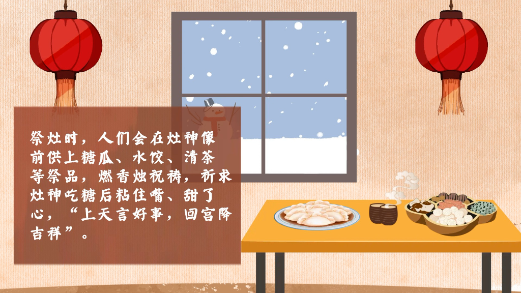 祭祀灶神的仪式称为“祀灶”“送灶”或“辞灶”,寄托着百姓对美满生活的向往,祈求神明保佑新年阖家平安,吉祥如意。祭灶时,人们会在灶神像前供上糖瓜、水饺、清茶等祭品,燃香烛祝祷,祈求灶神吃糖后粘住嘴、甜了心,“上天言好事,回宫降吉祥”“好事传上天,坏事丢一边”。