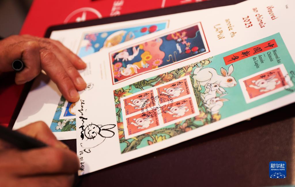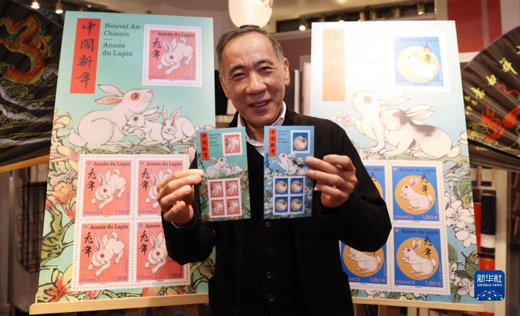 新华社巴黎1月14日电(记者胡雪)为迎接中国农历新年,法国邮政公司14日在巴黎举行中国兔年生肖纪念邮票发行仪式。