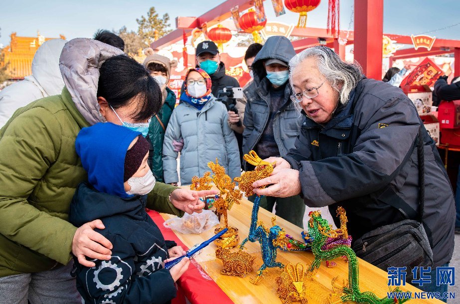 1月14日,呼和浩特,顾客在塞上老街年货节上选购非遗金属丝编工艺品。新华网发 (丁根厚摄)