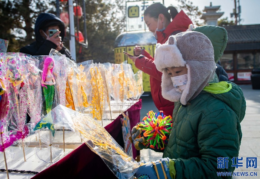 1月14日,呼和浩特,小朋友在塞上老街年货节上选购糖画。新华网发 (丁根厚摄)