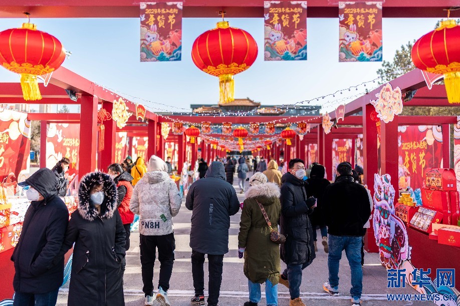 1月14日,呼和浩特,顾客在塞上老街年货节现场游览。新华网发 (丁根厚摄)