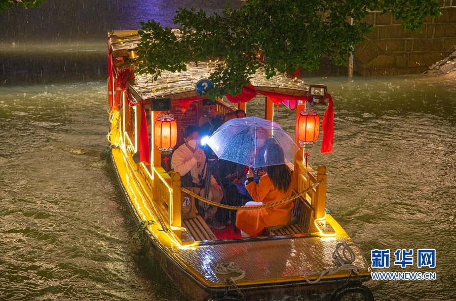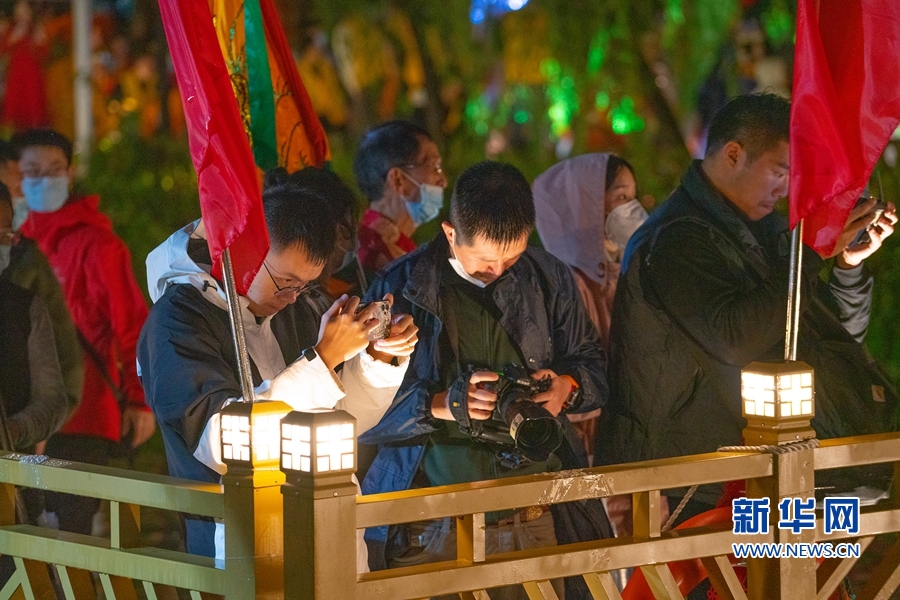 当晚虽下着小雨,仍有不少市民游客驻足岸边观看活动。新华网 蒋巧玲 摄