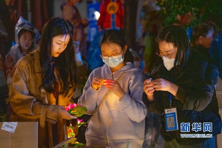 工作人员准备荷灯。新华网 蒋巧玲 摄