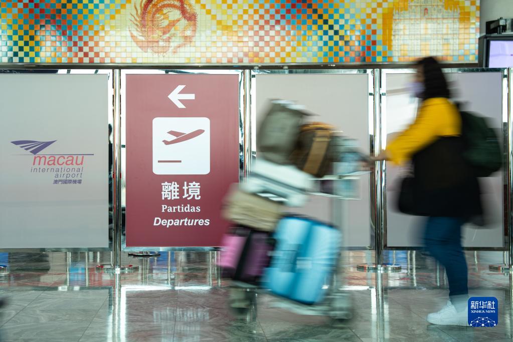 1月14日,旅客在澳门国际机场离境大堂。新华社记者 张金加 摄