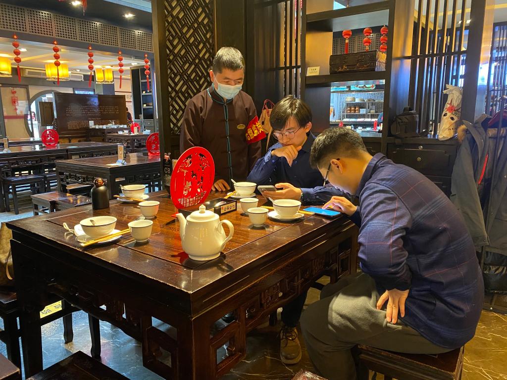 在绍兴市越城区的咸亨酒店,“光盘劝导员”在点菜时提醒顾客适量点餐。新华社记者 殷晓圣摄