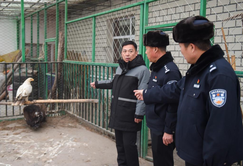 回到迪彦派出所后,王东涛拜访了仅有一墙之隔的古日格斯台国家级自然保护区野生动物救助站,同管理人员交流巡逻成果,顺便到后院看望前不久救助的草原雕。