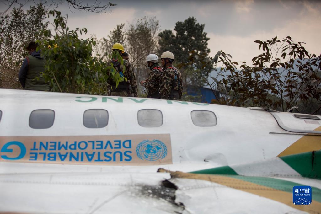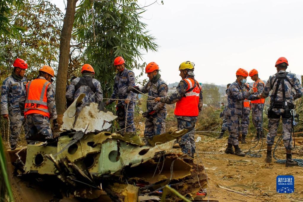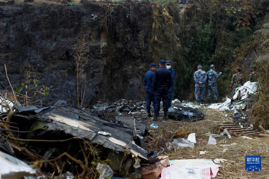 1月16日,救援人员在尼泊尔博克拉地区坠机现场工作。新华社发(苏拉韦尔·什雷斯塔摄)