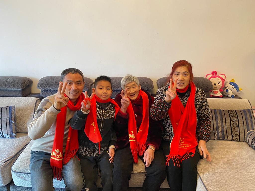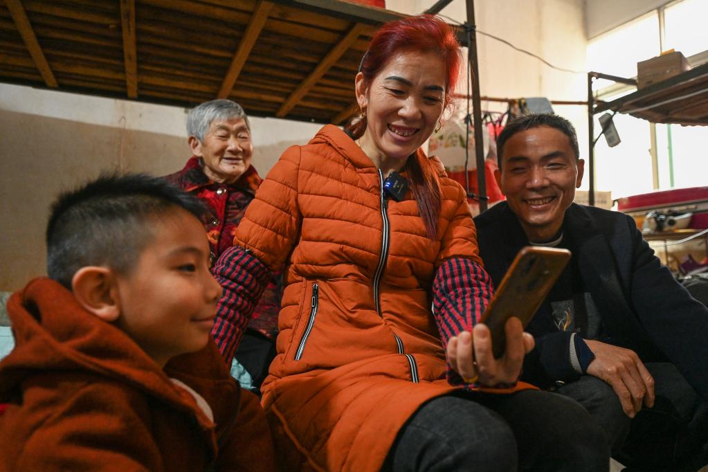 常玉凤一家和女儿通视频电话。新华社记者 周义 摄