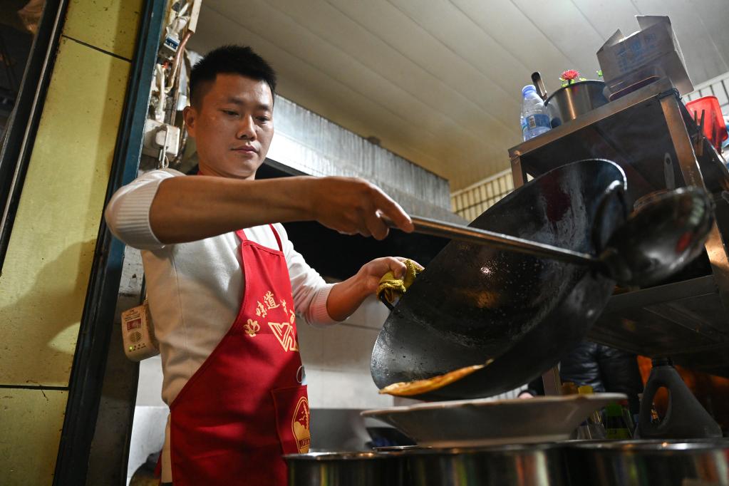 李小铁将做好的菜装盘。新华社记者 周义 摄