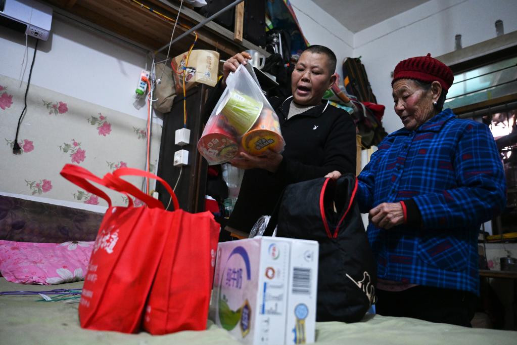 曾传富和母亲一起收拾返乡的东西。新华社记者 周义 摄