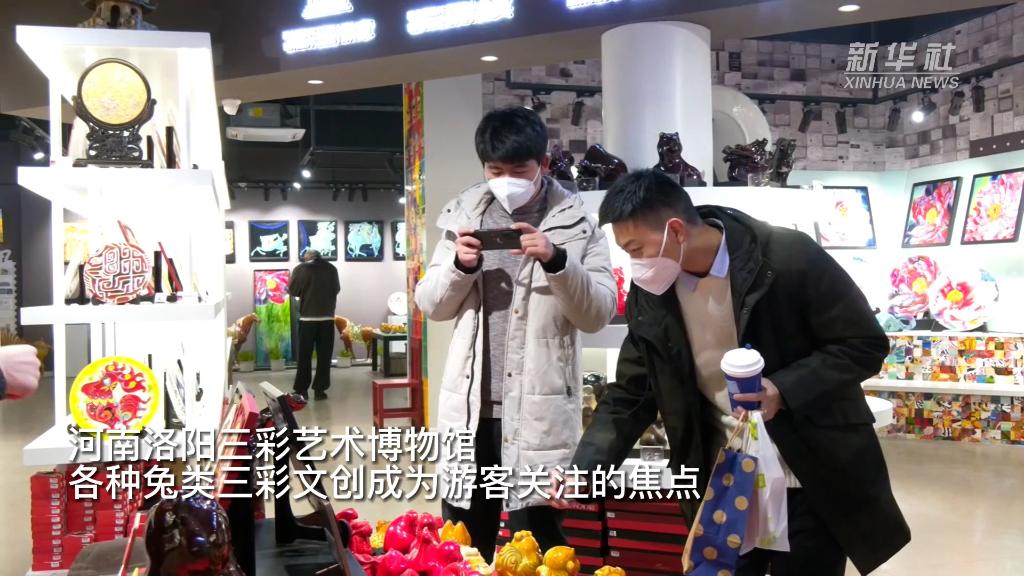 新年将至,各式各样的兔年主题非遗作品为年货市场注入非遗文化,受到市民追捧。洛阳三彩釉色厚重、色彩绚烂,文化底蕴深厚,以兔为题材的三彩产品迎来热销,人们纷纷走进洛阳三彩艺术博物馆,挑选自己喜欢的“小兔子”。