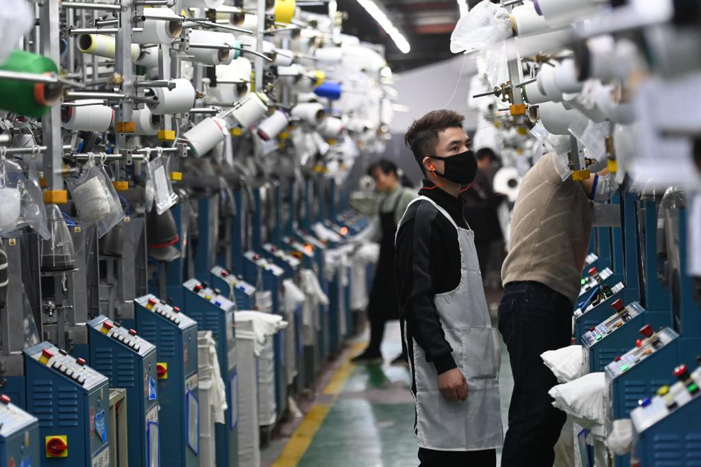 1月12日,义乌市一家袜业公司的工人正在丝织车间作业。新华社记者 黄宗治 摄