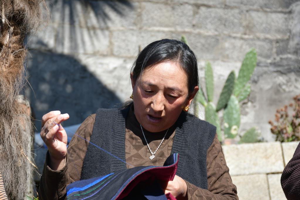 凉山州呷古彝绣非遗传承人为色阿比莫正在刺绣。新华社记者谢佼 摄