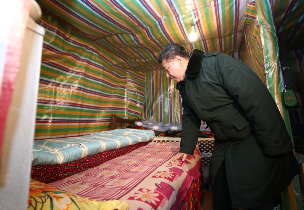2018年2月11日上午,习近平在四川凉山彝族自治州昭觉县三岔河乡三河村贫困户吉好也求家中看望。