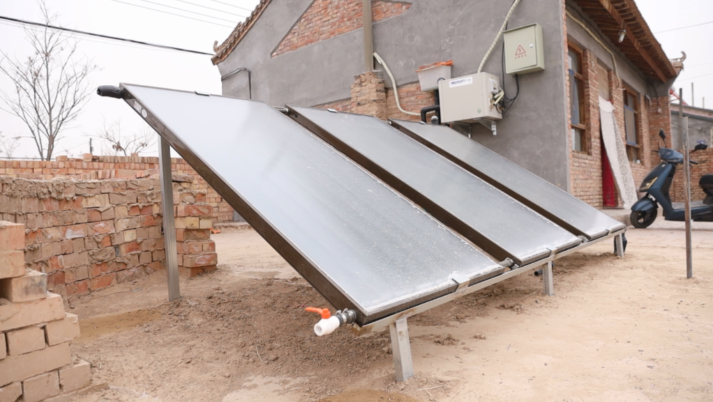这套装备的技术路线名为“地热+PVT(中文意为光伏和光热)”,通过打出150米深的地埋孔,并在村民院中或屋顶装太阳能集热器,将地热和光热提取转换为室内的热量。