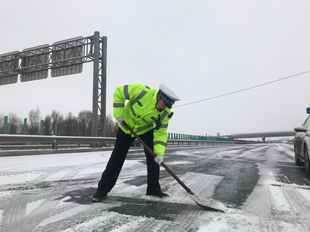 1月14日,山西交警在处理路面积雪。受访者供图