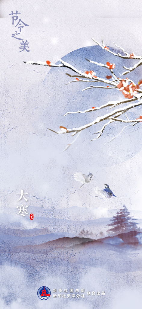 新华社天津1月19日电(记者周润健)“小寒大寒,冷成冰团”,北京时间1月20日16时30分将迎来大寒节气。此时节,我国大部分地区依然处在严寒时期,也正如民谚所说:“大寒时处三四九,天寒地冻冰上走。”