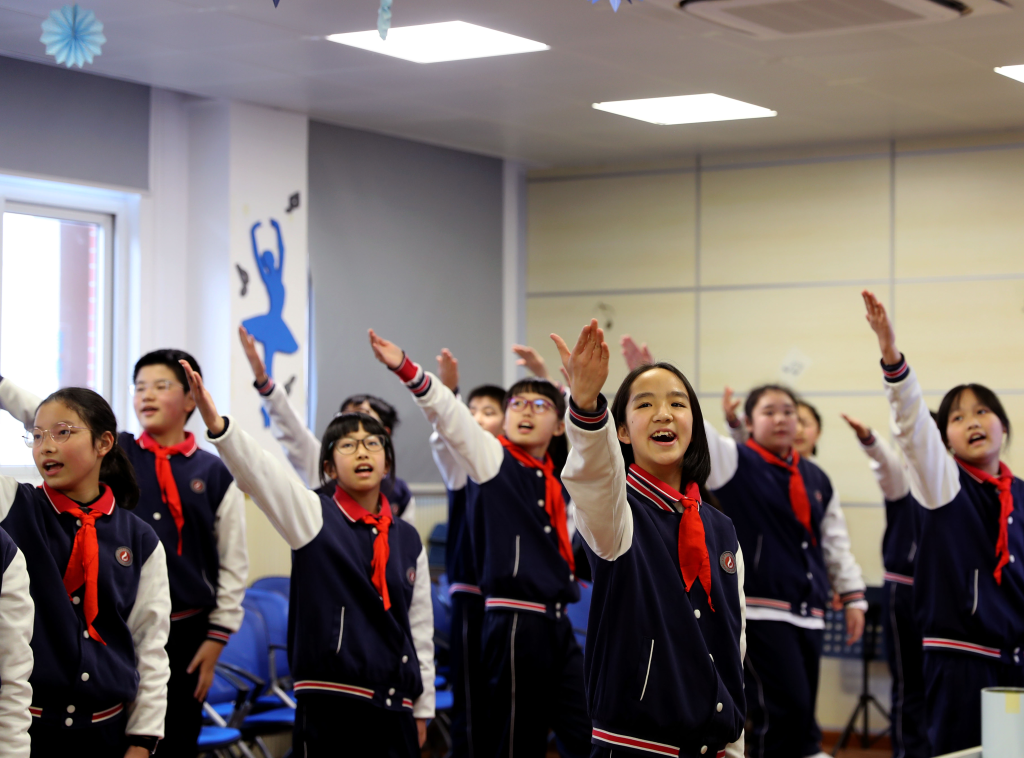 2022年2月23日,上海市格致初级中学的学生参加合唱社团课程。(新华社记者刘颖摄)