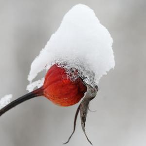 河南省焦作市温县,月季花果实与白雪相映成趣。新华社发(徐宏星摄)
