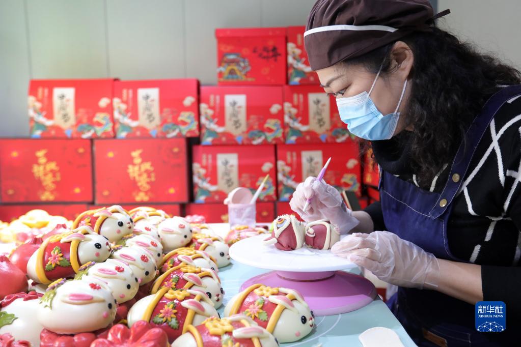 春节临近,安徽省淮北市一些面点师以兔为主题,创作出各式各样的“萌兔”花馍,供应节日市场,迎接新春佳节的到来。