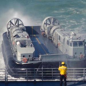 海南舰位南海某海域开展登陆演练,舰载直升机进行连续多波次起降训练(资料照片)。