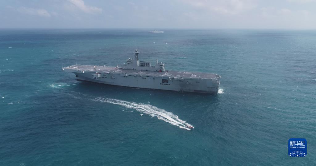 海南舰、广西舰组成编队,位南海某海域开展登陆演练,海南舰释放小艇进行搜救训练(资料照片)。