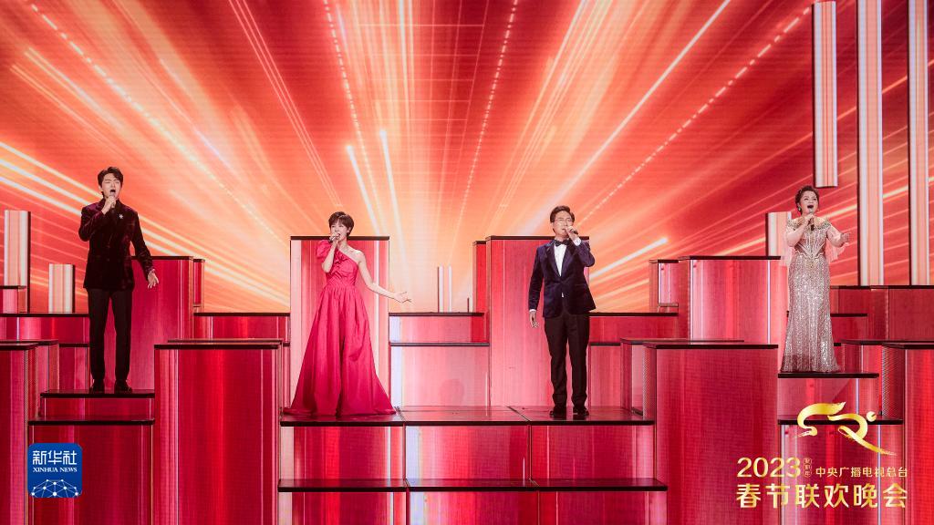 1月19日,中央广播电视总台《2023年春节联欢晚会》按正式直播标准流程顺利完成了第五次彩排。这是彩排现场。