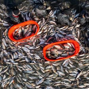 连日来,河北省唐山市丰南区的水产养殖户们忙着在池塘内破冰捕鱼,以供应春节市场。