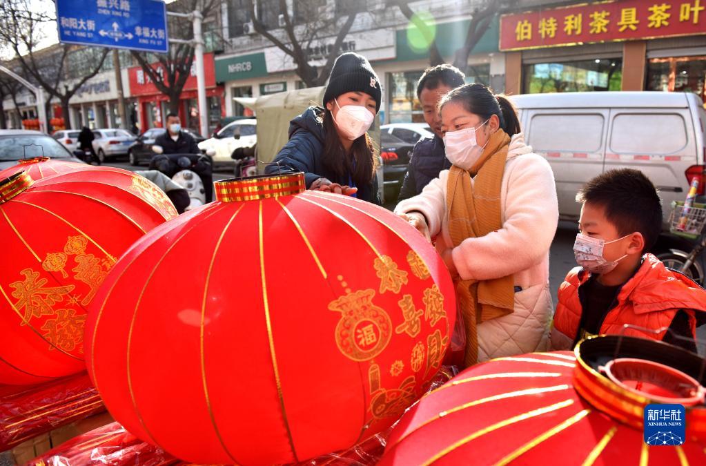 1月20日,市民在河北省邢台市南和区和阳镇年货集市购买红灯笼。