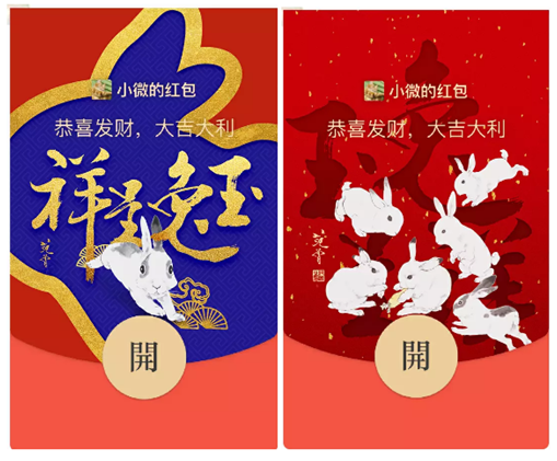 设计取材时围绕“吉祥玉兔”的角度进行展开,挖掘书画作品中动人的小细节。设计作品尝试把传统文化所寄寓的美好祝福装进红包,并通过现代化生活的方式传递到我们身边,与亿万华人及全球朋友一起怀揣美好心愿跨入农历新年。