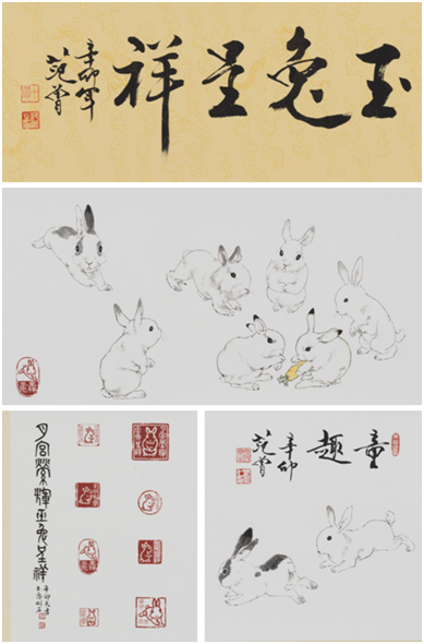 生肖文化发轫于先秦,至迟在南北朝时,人们已将十二地支纪年与十二生肖动物相对应,形成了中国人记载生年最精便于记忆的方法。由此形成的生肖文化之中,兔子以白毛朱目的祥瑞之气,闪烁着良善灵巧与温和敦厚的光芒,成为世人眼中平安喜乐、健康吉祥、诚实无欺的象征。新春将至,在中国网文创设计师的巧思再构下,范曾先生笔下的玉兔们也以数字化贺岁形式跃入到全球网友的移动终端。