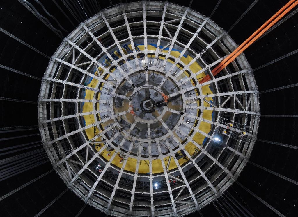 图为位于地下700米的江门中微子实验探测器(新华社记者邓华2022年9月2日摄,无人机照片)。