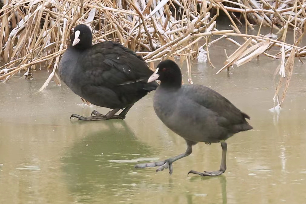 越冬候鸟骨顶鸡在贵州草海国家级自然保护区内活动。(受访者供图)