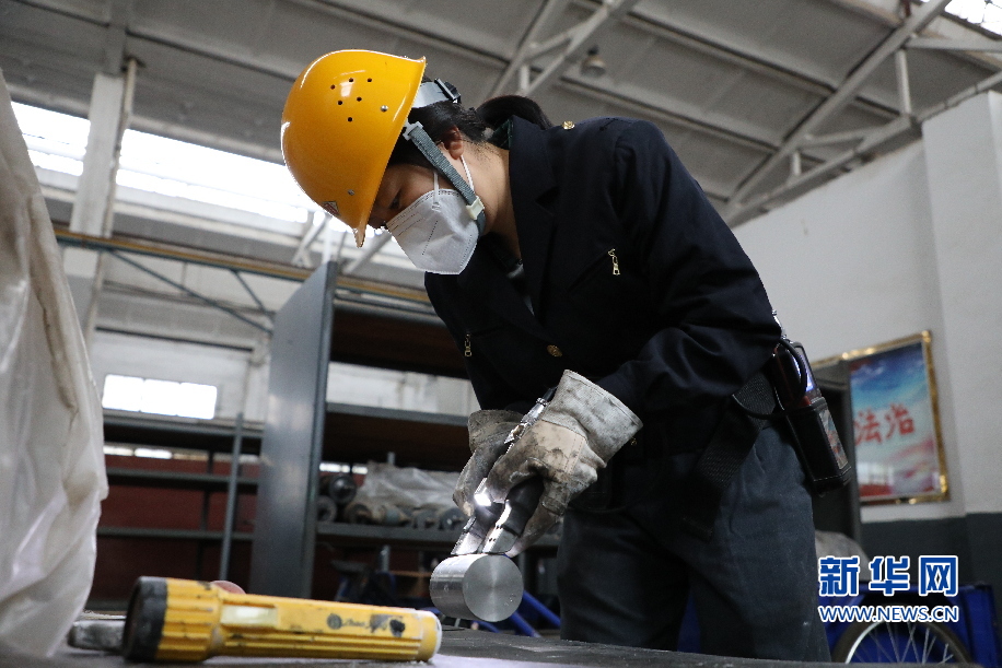 徐欢正在检查磁粉探伤仪。新华网发(车驰 摄)