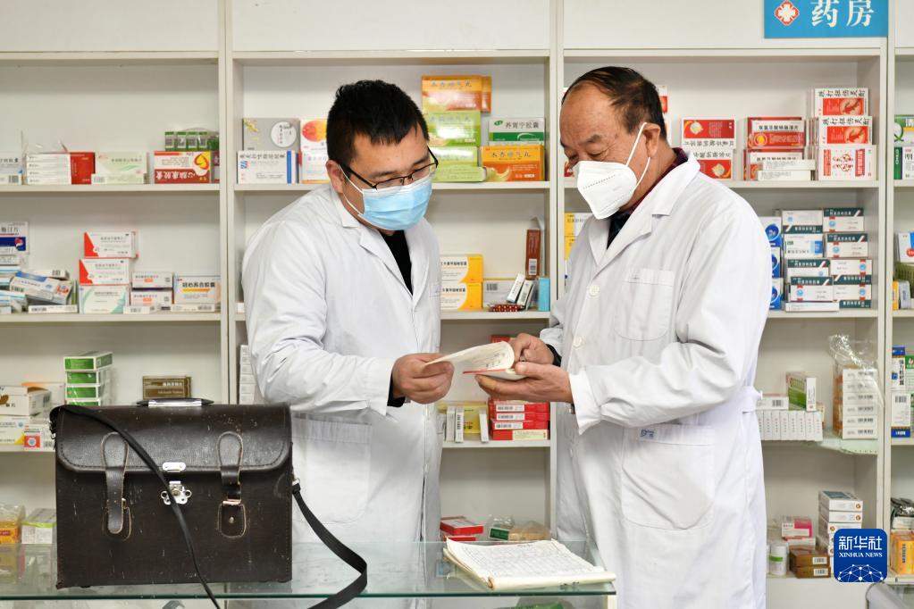 1月20日,南红星(右)和儿子南洋阳在村卫生室内交流当天诊治分工事宜。