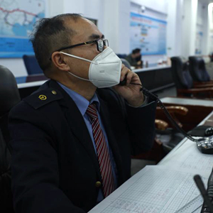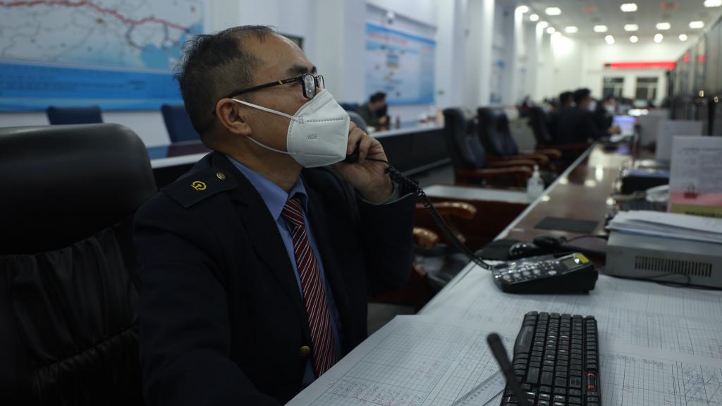 1月10日,马世安在协调调度列车。新华社记者 王怡静 摄