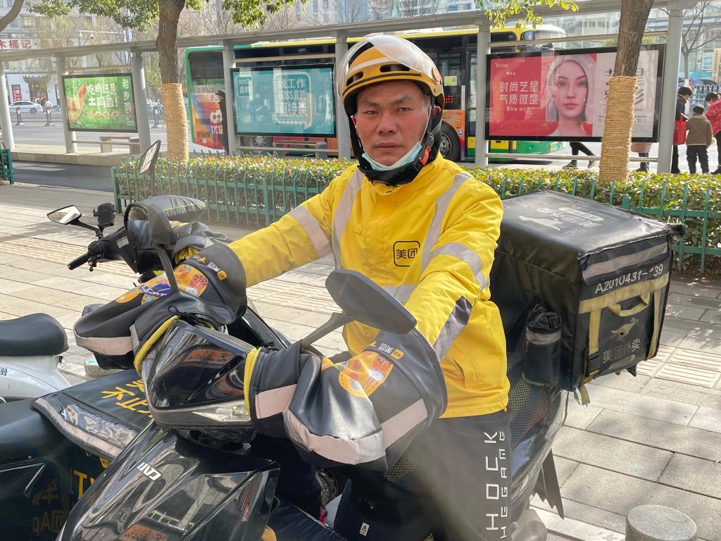 外卖骑手刘建昌在工作中。(潘峰 摄)