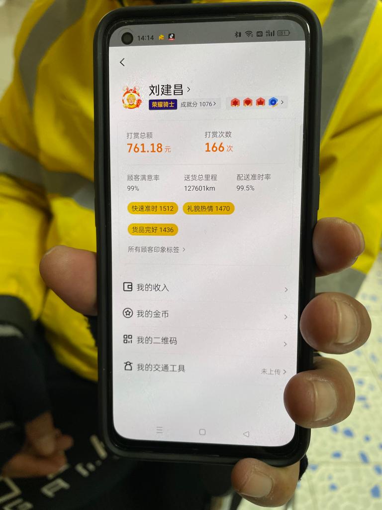 盘点过去一年的跑单情况,他印象最深的是送出了128笔医药订单。“每次送药的时候我都会加快速度,尽量把这些订单排在前面送。每当遇到顾客留言道谢,我都打心底里满足。”