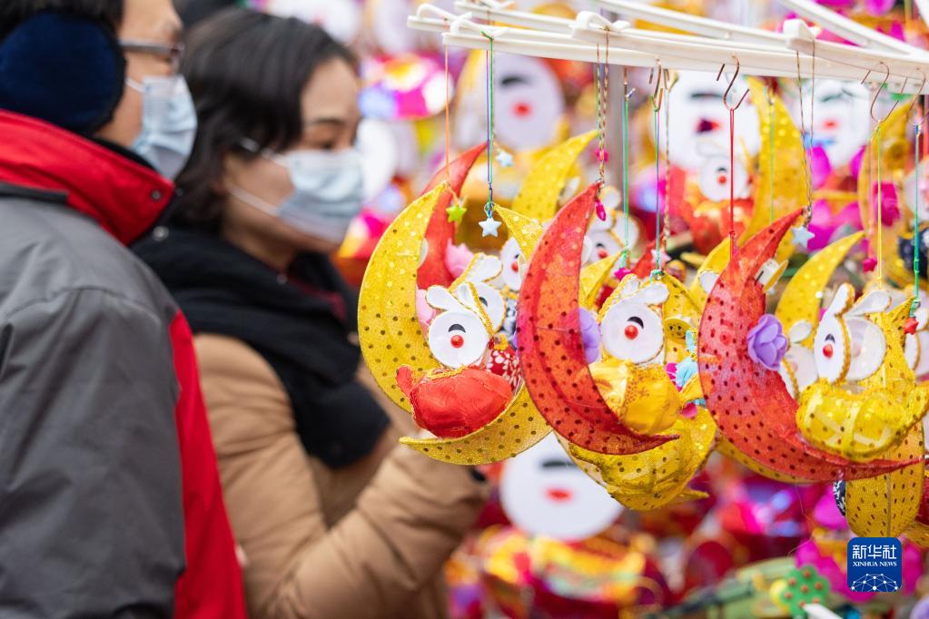 1月22日,游人在江苏南京夫子庙花灯市场挑选兔子灯。