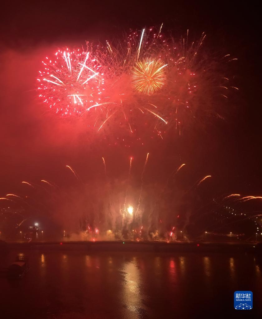 除夕当晚,“光影焰火歌舞嘉年华”活动在福建省福州市“闽江之心”举行,光影与焰火相融合,为人们呈上一场全景光影秀。