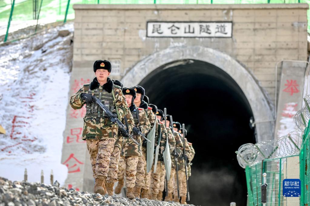 1月21日,武警青海总队海西支队官兵在青藏铁路昆仑山隧道巡逻执勤。