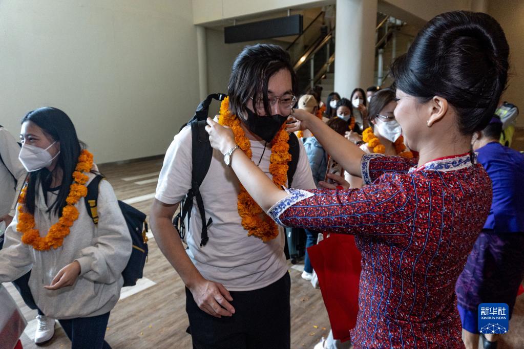 当天,旅游胜地巴厘岛迎来2023年首架中国游客包机。乘客从中国深圳飞抵巴厘岛后,在机场受到热烈欢迎。