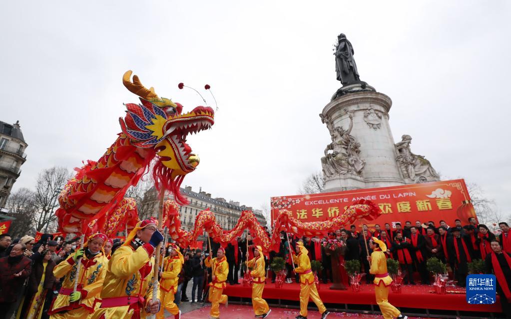 当日,法国巴黎举行盛大兔年春节彩妆游行。该活动由当地多个华侨华人社团共同组织,庆祝农历兔年春节的到来,吸引众多市民前来参观。