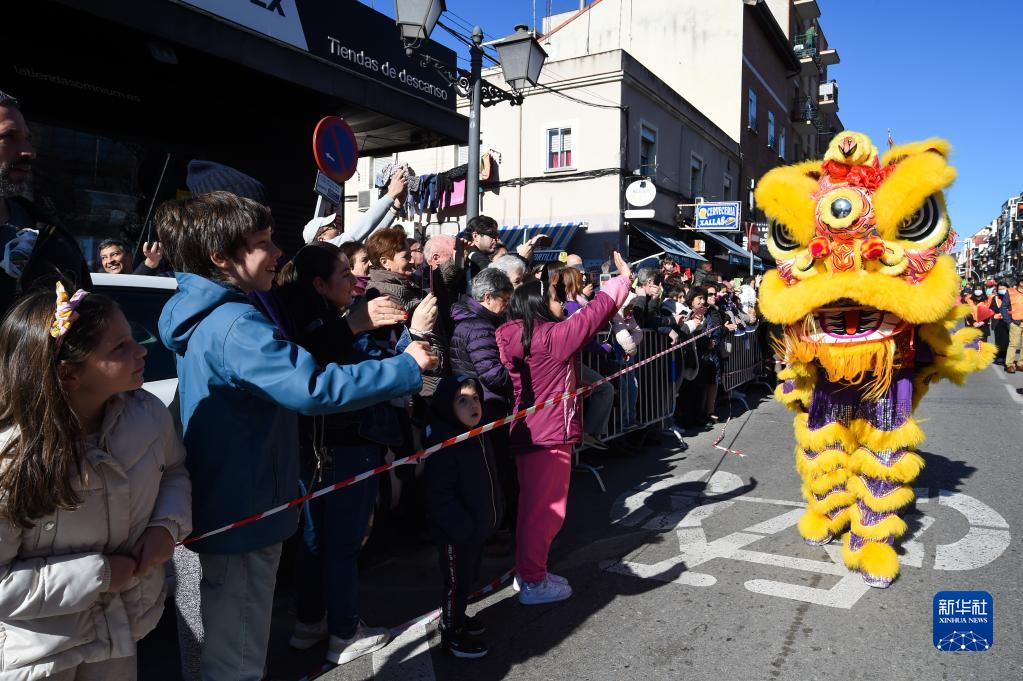 当日,西班牙马德里华人街区乌塞拉举行彩妆游行,庆祝中国农历新年的到来。当地民众纷纷涌上街头,与华侨华人共享节日的喜悦。