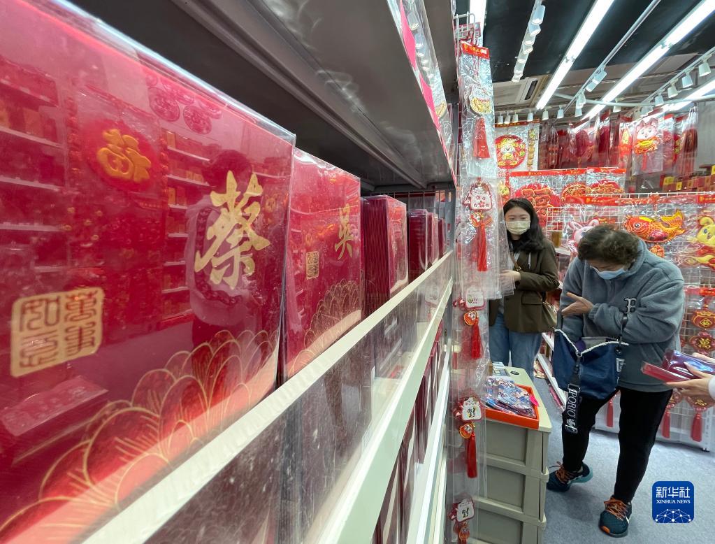 这是香港铜锣湾罗素街一家销售利是封的店铺(1月11日摄)。新华社记者 李钢 摄