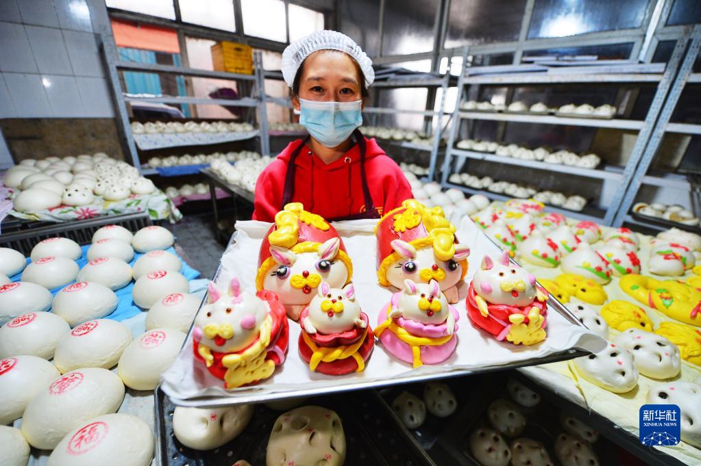 河北省涉县张家庄一街村,制作跑马花灯的工人们延续百年传统技艺,忙着赶制节日期间的订单;浙江省仙居县金竹溪村,400多村民舞起一条360多米长的板凳龙,一派壮观喜庆;广西罗城仫佬族自治县思平村,民间剪纸艺人们用一张张福兔窗花,把祝福通过网络“送”到千家万户……