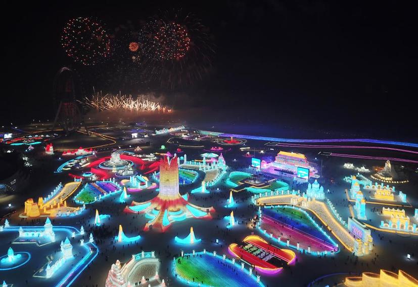 焰火在哈尔滨冰雪大世界绽放。新华社记者王建威 摄