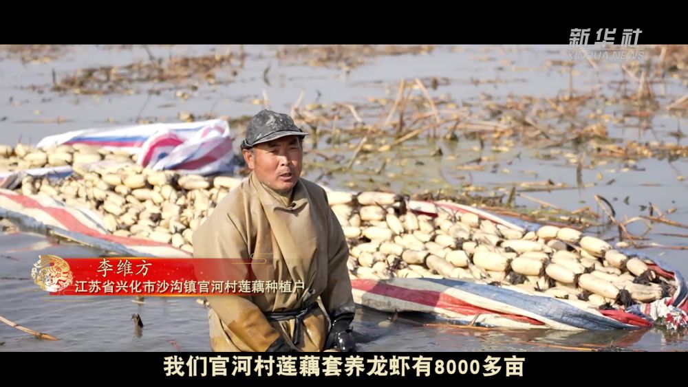 在江苏省兴化市沙沟镇官河村莲藕种植基地,藕农们正在藕塘采藕,供应春节市场。