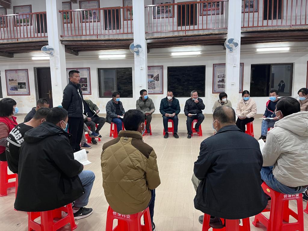 晚上六点刚过,村民们早早来到文化室。这里没有主席台,没有发言稿,只有一圈红胶凳。悦塘村的驻村工作队员、村“两委”干部与群众围坐一起。