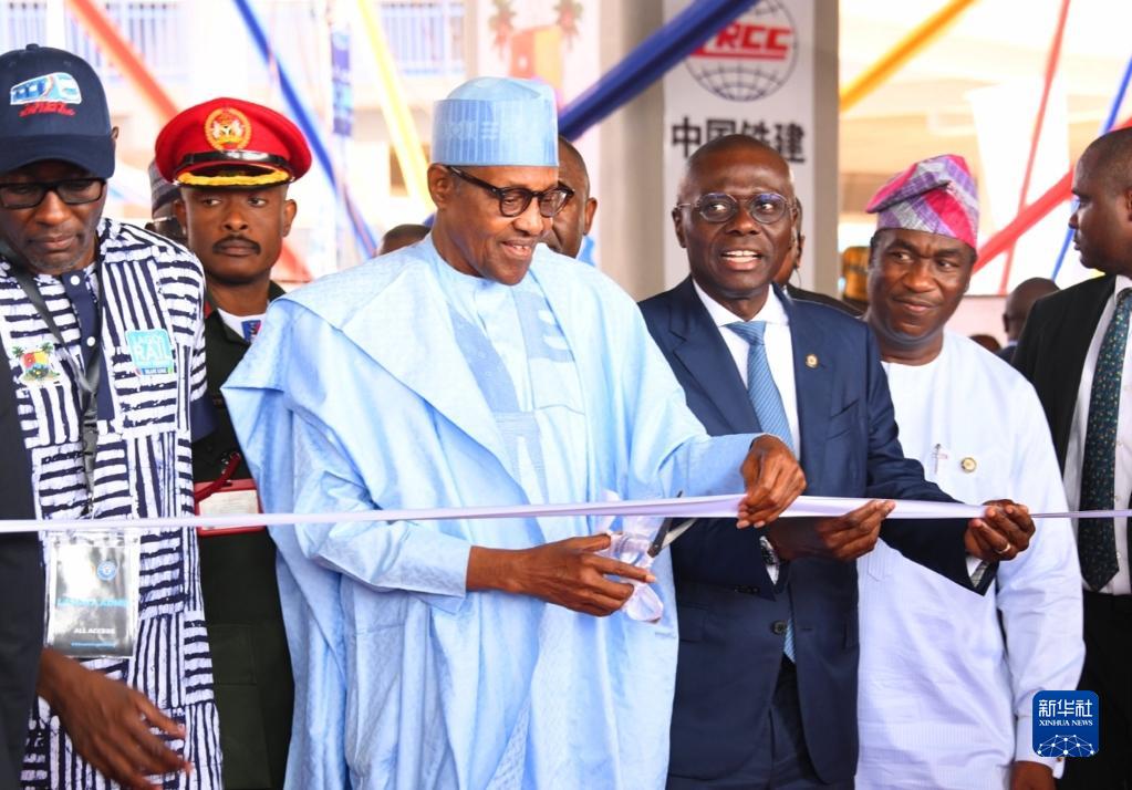 1月24日,尼日利亚总统布哈里(前左二)在拉各斯出席中企承建的拉各斯轻轨蓝线项目一期通车仪式。新华社发(托普·阿尤库摄)